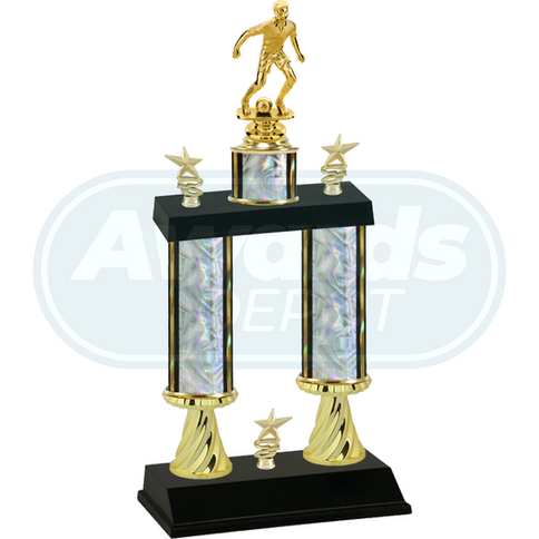 20" Double Column Soccer Action Achievement Trophy with Riser